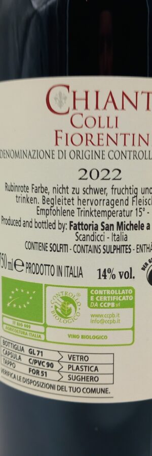 So macht Chianti Spaß: duftig, fruchtig, der Mund voll Wein mit guter Sangiovese-Struktur im Rücken. 80 % Sangiovese, 20 % Canaiolo, Colorino und Merlot. Ausbau im klassischen Zementtank und im großen Holzfass.