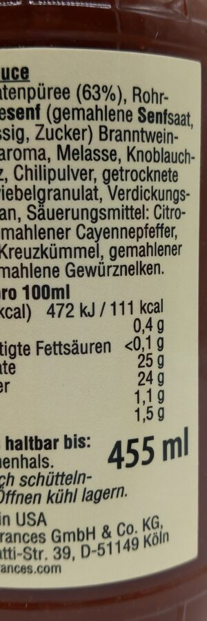 Mit einer würzigen, leicht rauchigen Note sorgt diese Sauce für den originalen BBQ-Geschmack. Hergestellt aus natürlichen Zutaten und ohne künstliche Zusatzstoffe, bietet sie eine perfekte Konsistenz für Marinaden, Dips und Glasuren. Die große 455ml Flasche ist ideal für Grillfeste und Familienessen.