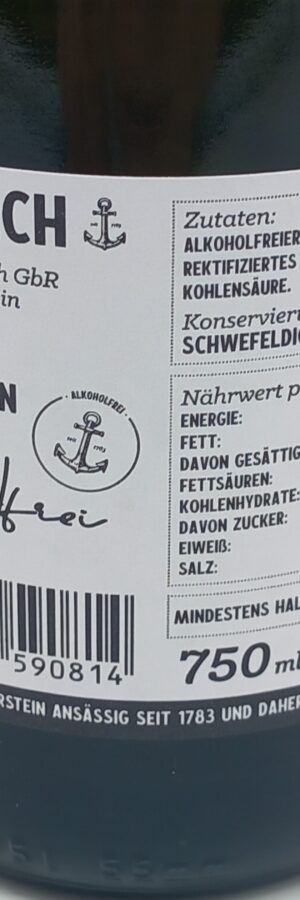 Alkoholfreier Sauvignon Blanc Wein, rektifiziertes Traubenmostkonzentrat, Kohlensäure, Konservierungsmittel: Schwefeldioxid