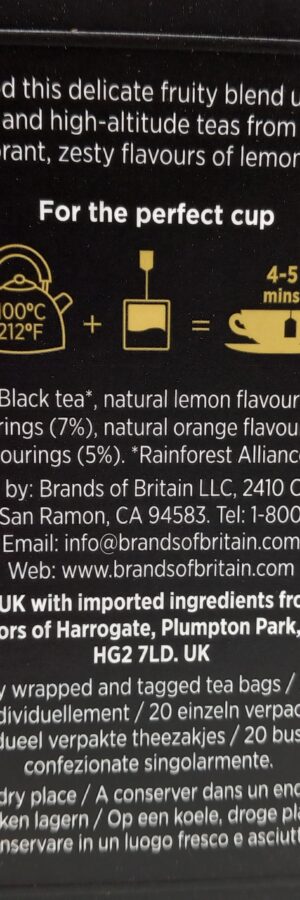 Das Ergebnis ist eine noch fruchtigere Variante von Earl Grey – ein leichter, heller, goldener Tee, der mit oder ohne Milch fabelhaft schmeckt und zum Nachmittagstee köstlich ist.